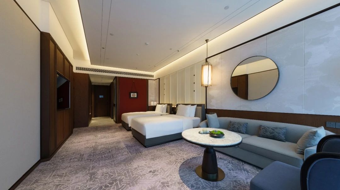 酒店以宋式美学为设计特色,酒店大堂的“云起·鹊华秋色”,餐饮区的“云深·华屋满朋”,宴会厅的“云上·宴宾会友”,客房的“云归·晓镜画屏”全面诠释了宋式美学的匠心独运,将精致和典雅发挥得淋漓尽致。“中式、简约、现代、绿色”是酒店的四大核心理念,可以让来宾感受到浓厚的中国传统文化及细致入微、始终如一的待客之道。