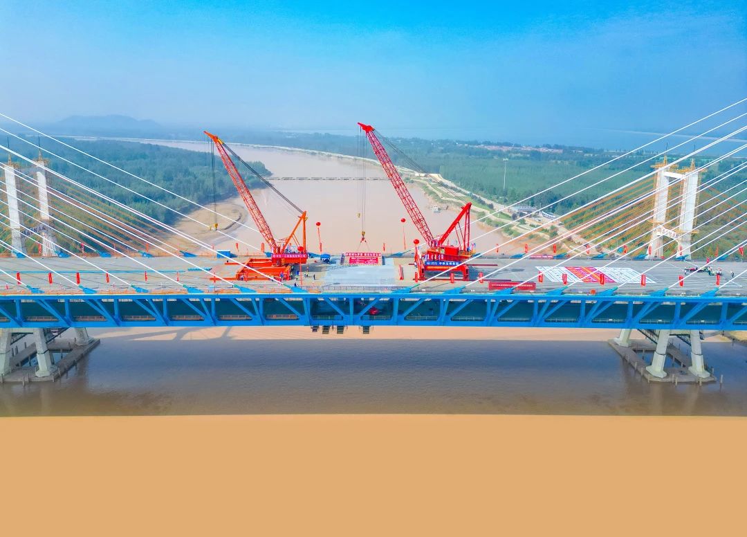 G104京岚线济南黄河公路大桥工程是连接济南新旧动能转换起步区与老城区的南北向主干道,是济南市“四桥四隧”规划建设的重要组成部分,对助推济南加速迈向黄河时代、促进起步区经济社会发展具有重要意义。项目采用双塔双索面公轨合建钢桁梁斜拉桥形式建造,全长7.748公里,主线桥梁工程长6.87公里,建设工期48个月,计划2025年6月底通车。