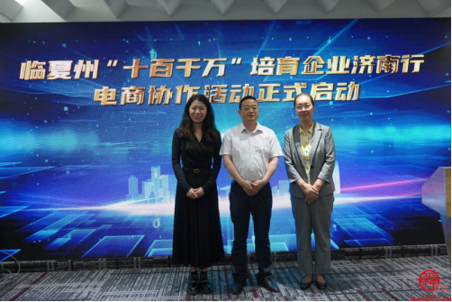 临夏州商务局副局长陈建卓、济南日报社副总编辑、舜网总编辑张阿娜,济南市商务局电子商务处副处长戴晶共同启动活动
