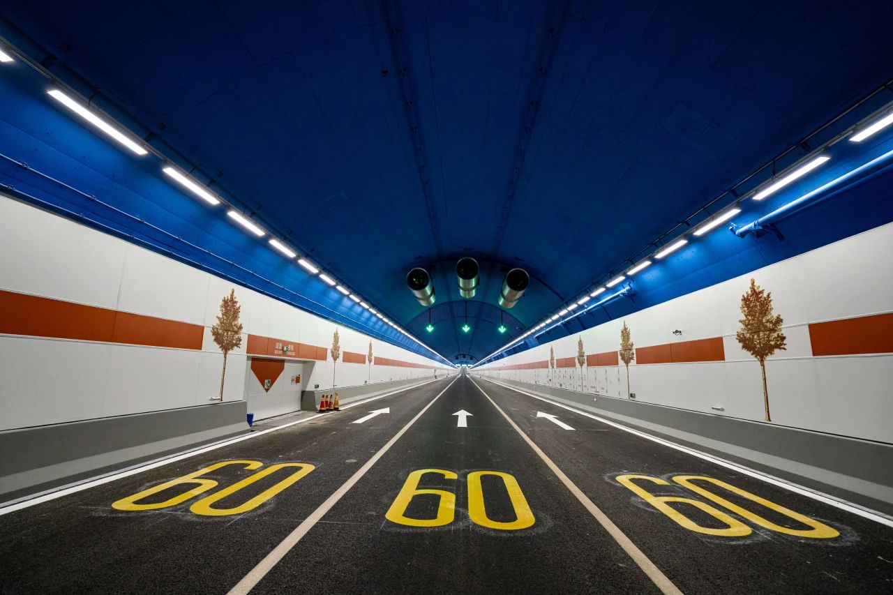 隧道排水系统拥有2间雨水泵房、6间废水泵房和32台55kw、600m³/h的水泵,以及14条截水沟。隧道排水系统有效地减小了敞开段的汇流面积,从而减少了雨水的积聚和滞留,防止雨水在隧道口附近积聚,确保车辆在雨天能够安全地进出隧道。同时,截水沟还能够将雨水引入泵房进行排水,确保雨水能够及时排除,避免积水对隧道的安全通行造成影响。
