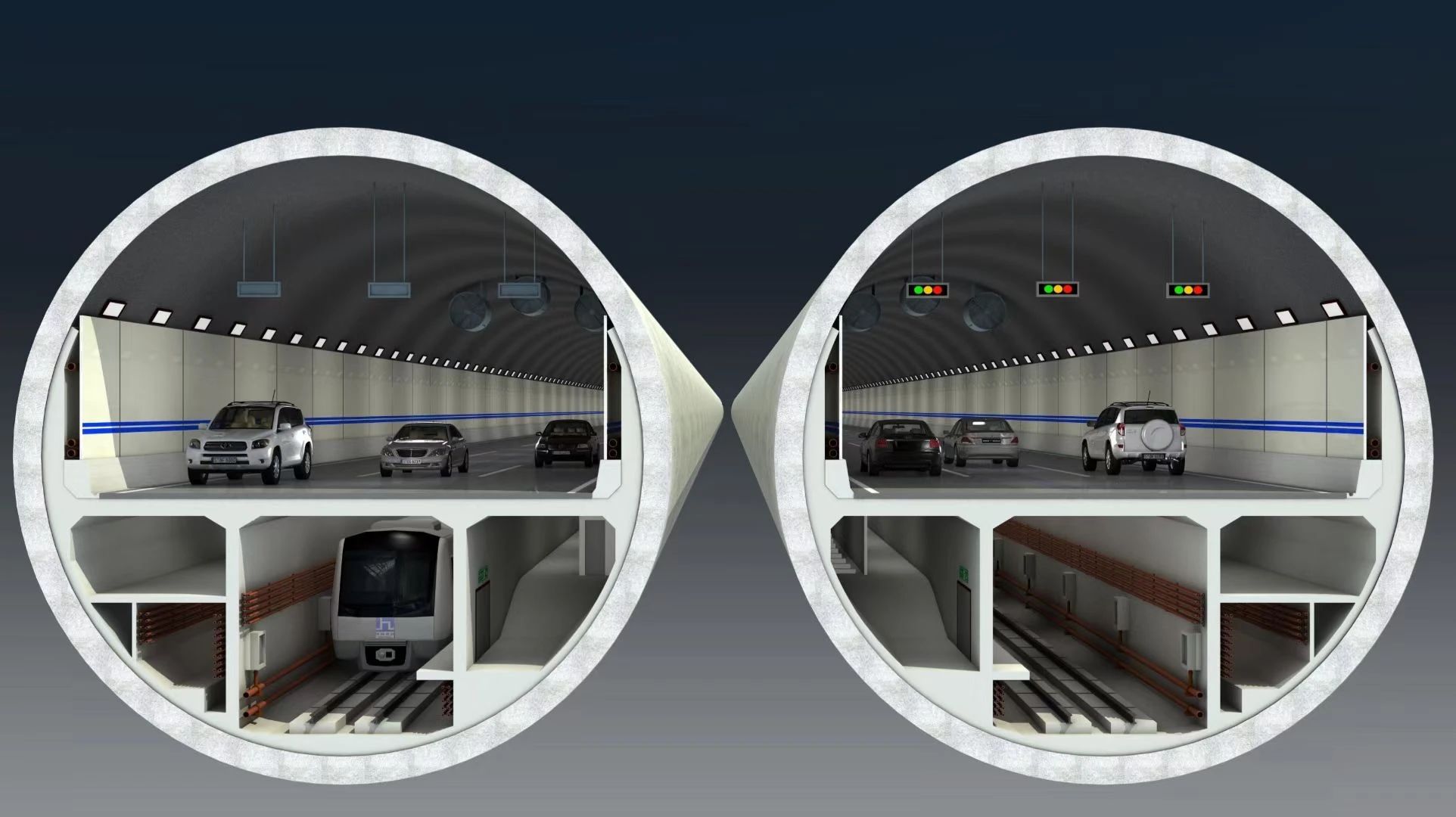 在济南黄河济泺路隧道中,交通系统的主要设备包括72个道路指示灯、7块情报板和12组车感线圈,设备的应用可以有效地诱导车辆按照规定的路线和速度行驶,保证交通流畅和安全,进一步提高交通运营效率;