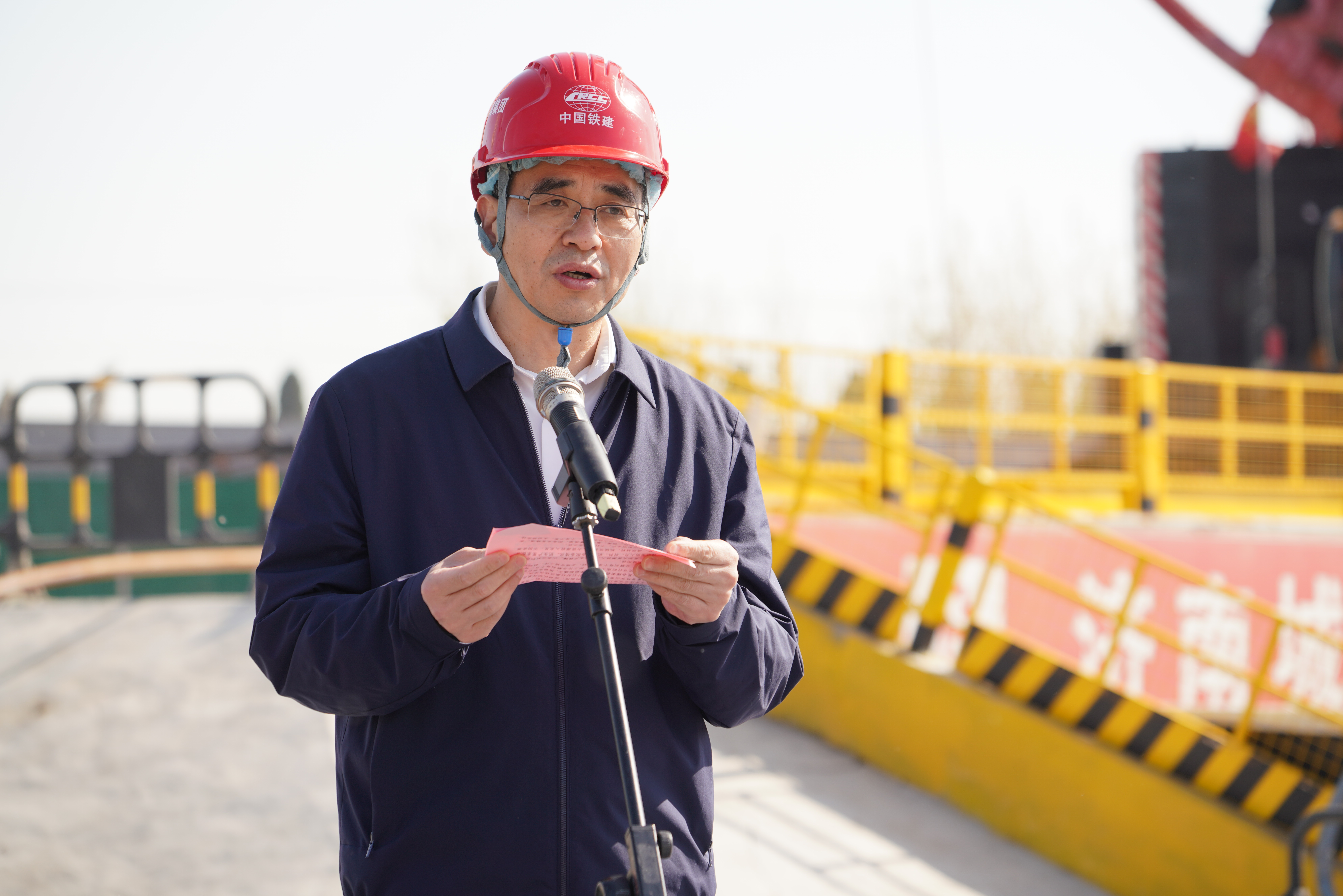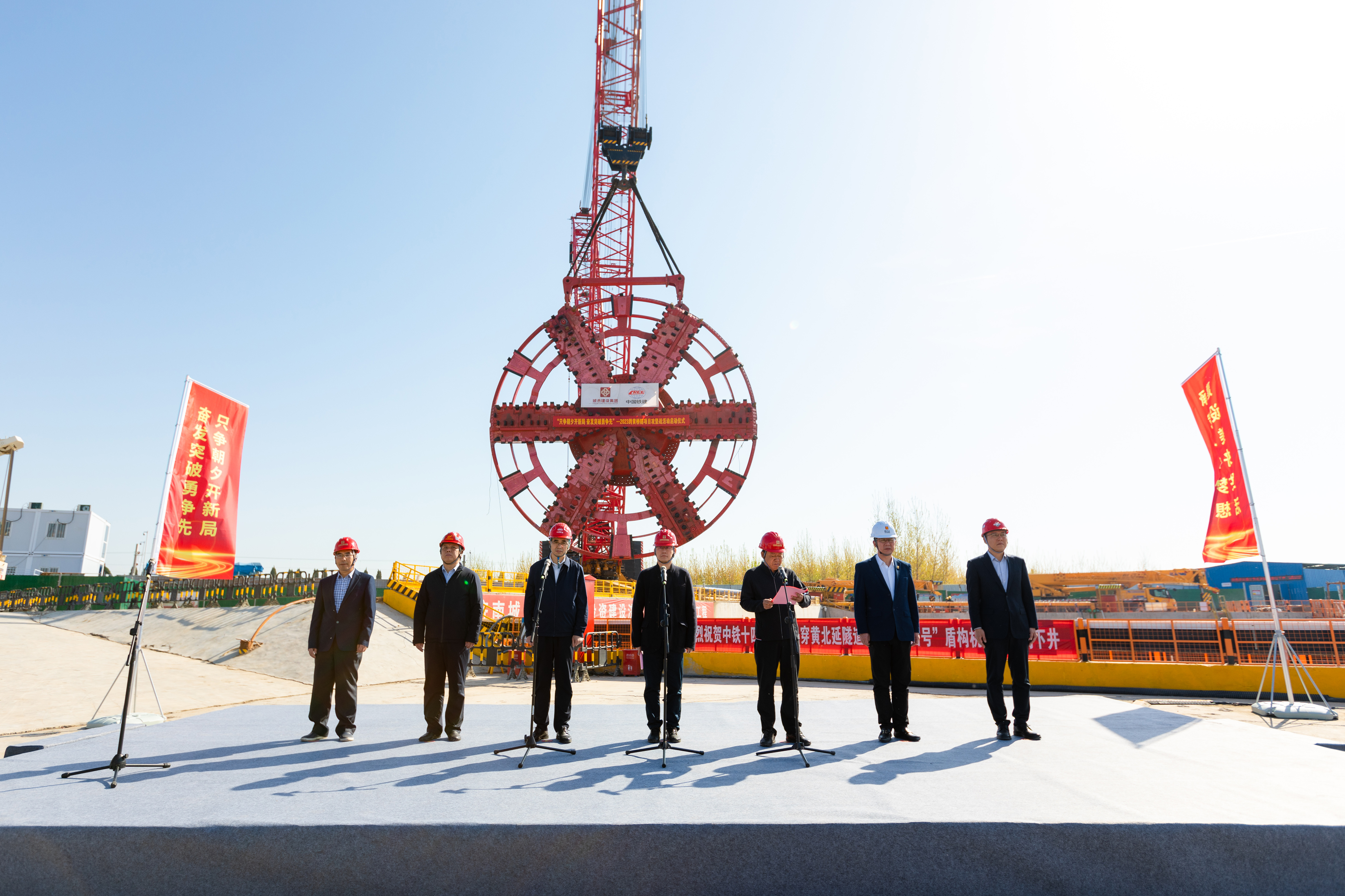 4月8日,伟德国际1949在济泺路穿黄北延隧道盾构始发井现场举行“只争朝夕开新局,奋发突破勇争先”2023年跨黄桥隧项目攻坚战活动启动仪式。
