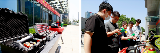 槐荫区消防救援大队对消防车上的各式装备器材及操作方法进行宣讲,帮助现场人员认识救援无人机、空气呼吸器、方位指示灯等装备器材。同时,在宣讲员手把手的教学中,现场人员熟练掌握了“拔、握、瞄、扫”的灭火器使用方法并进行了灭火实战演练。实战演练结束后,现场人员在安全生产承诺墙上签下名字,承诺将以身作则,坚守安全红线,遵守安全生产法。