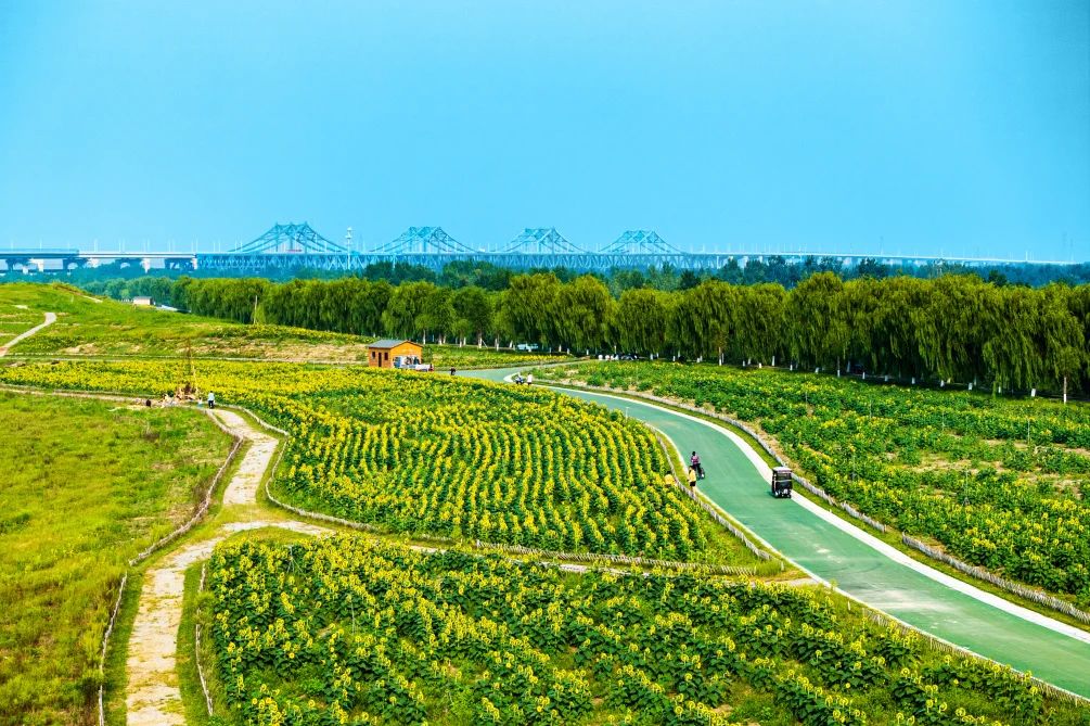 直接导航“济南黄河大桥”,过桥后立即右转,沿着黄河北大堤继续向前直行2-3公里,道路左边就能看到大片的花海。