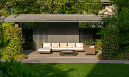 梧桐郡汲取东方大道至简的审美哲思,同频国际前沿建筑美学,带着蓝绿城“桂语系”审美基因。星级酒店式业主客厅、宝格丽质感无边镜面泳池、高奢精装双入户大堂,完全步行化的公园体系、多主题组团景观、最宽近69米楼间距、高级泛会所式架空层……营造度假式的松弛氛围。