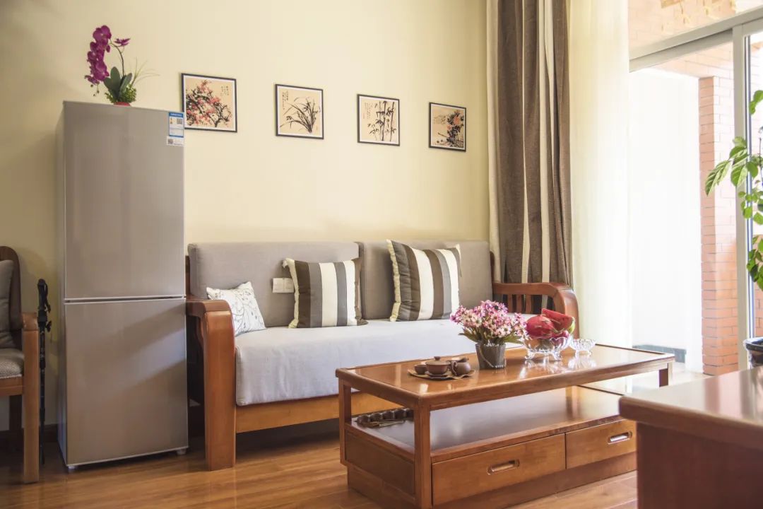 康养、享养专区房间内均配备了全套家具、家电、床上用品,可以做到拎包入住,入住长者可根据评估等级享受24小时管家式服务。