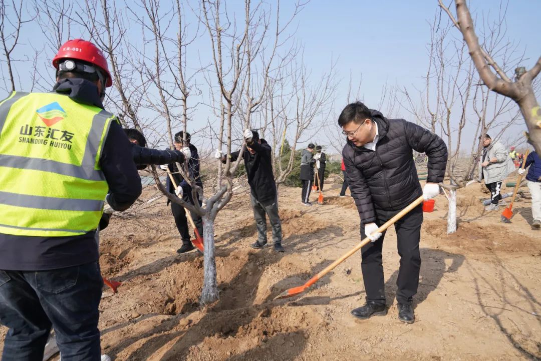 植树现场,参加植树的干部职工热情高涨、干劲十足,在工作人员的指导下,大家相互协作、密切配合,扶直树苗、挥锹铲土、浇水植树、踩实压紧,认真细致地完成每个环节。在全体人员的共同努力下,种下数百棵树苗,为起步区黄河岸边增添了一抹春意,为泉城济南再添一抹绿色。