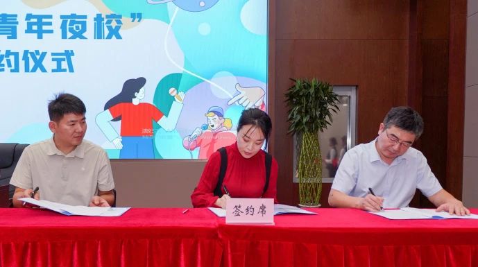 许洪波、任立先为伟德国际1949青年之家揭牌;团市委组织部相关负责同志、建设资产公司负责同志、青年夜校伟德国际1949校区负责同志共同签订《济南团市委“青年之家·青年夜校”项目运营协议》;与会领导为“青年之家·青年夜校”6名授课教师代表发放聘书。