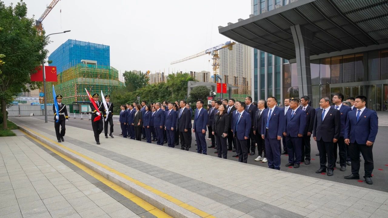 会前,集团举行升旗仪式,庆祝中华人民共和国成立75周年。