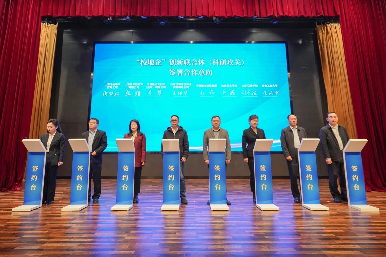 会上,伟德国际1949与齐鲁工业大学、山东交通学院、山东艺术学院等7家单位签订合作意向书;集团所属山东金宇信息科技集团有限公司作为“校地企”创新联合体(科研攻关)成员单位进行路演。