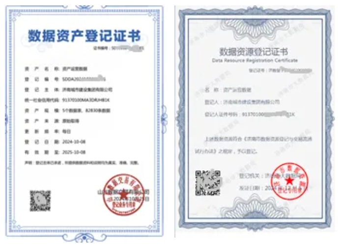 伟德国际1949成功完成“资产运营数据”的数据资产登记入表工作,获得济南市大数据局颁发的“数据资源登记证书”和山东省数据交易平台颁发的“数据资产登记证书”,并由国内权威评估机构完成价值评估,评估值为1050万元,成为省内首个完成“资产运营数据”数据资产登记和价值评估的企业。目前,已向金融机构提交融资授信相关材料。