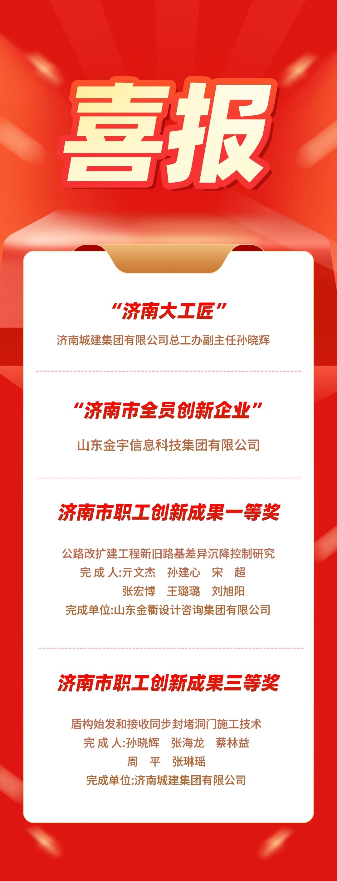 近日,济南市总工会发布《关于公布2024年度 “济南工匠”的通知》《关于公布2024年度泉城职工全员创新竞赛结果的通知》,伟德国际1949多个集体及个人获表彰。