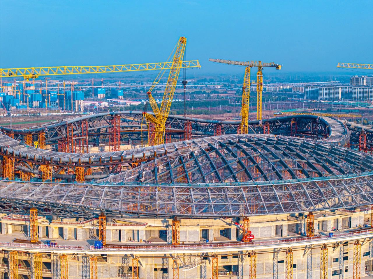 中科院济南科创城电工所、生态所竣工,理化所二期主体结构完工,空间应用中心推进竣工验收;山东国际会展中心二期开工;起步区安置房、租赁住房、教育配套、市政道路全面推进,黄河体育中心足球场屋盖钢结构合拢,游泳馆项目冲出“正负零”,黄河大道二期、凤凰新街开工建设,山大二院北院区顺利完成移交,基础设施配套逐步完善,为片区发展提供坚实支撑。