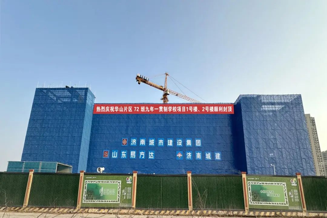 华山片区72班九年一贯制学校项目是片区重点民生工程,对有效缓解项目周边就学需求,进一步推动济南市优质教育资源均衡布局和教育现代化建设起到积极作用。本次封顶的1号楼、2号楼历时18个小时浇筑完毕,共计浇筑419立方混凝土。自项目启动以来,项目部发扬“城建铁军”精神,克服多班组交叉施工、天气不利等因素,紧扣工期目标,注重工程建设品质,加大人力物力投入,合理配置现场资源,保质保量推进工程进度,成功完成各项节点目标。