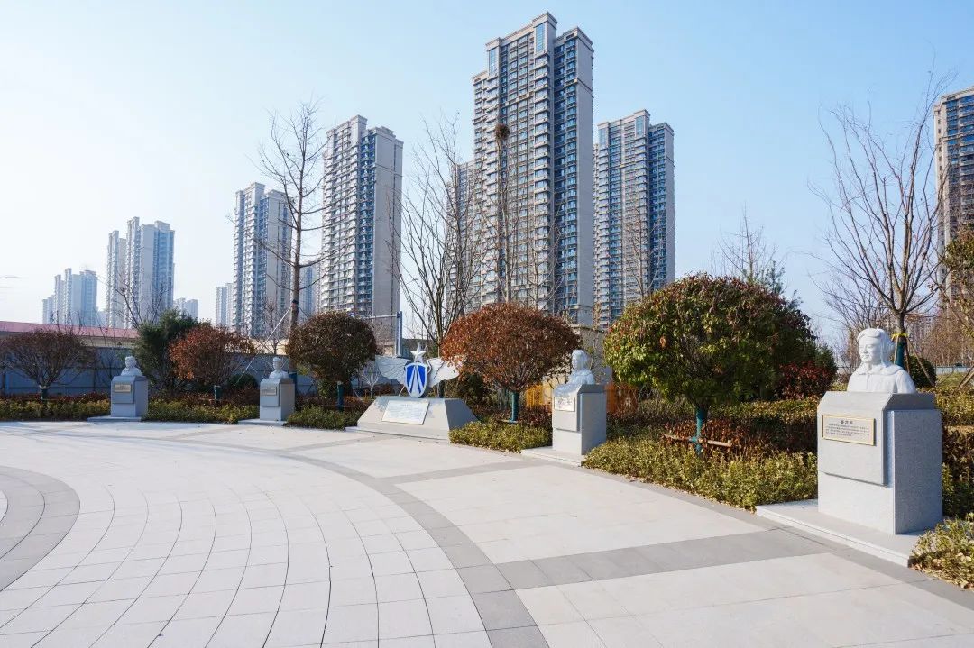 在公园南地块纪念广场,通过展示张庄机场原驻扎部队6位空军战斗英雄的雕像和英雄事迹,以及“空中铁拳精神”展示,传承红色基因。