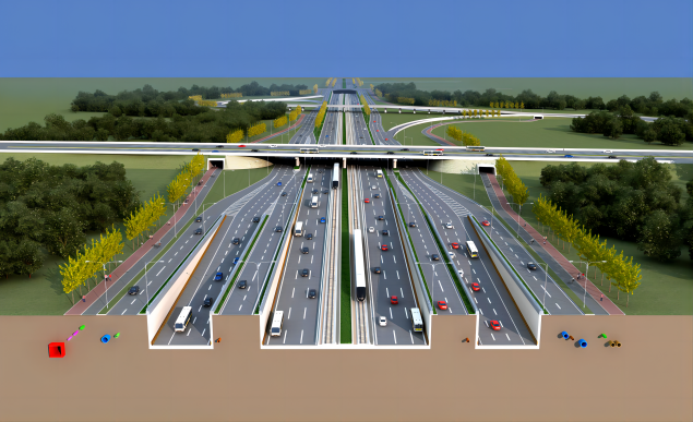为确保城市规划适应新时代发展需求,黄河大道采用有轨电车地下敷设的形式通过城市核心区,大大降低了两侧地块割裂影响,同时与道路隧道共建,兼顾强大的交通功能,整体空间布局进一步集约,节约地上与地下空间,充分提升城市风貌和空间品质。