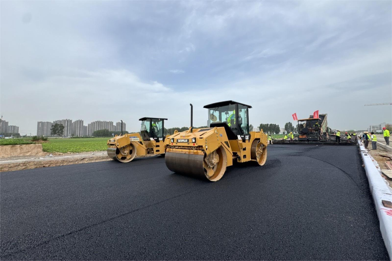 郑州航空港经济综合实验区仓储二路(荆州路-孔武路)道路工程完成中粒式沥青摊铺。本次沥青摊铺工作自6月24日开始,经过2天的紧张施工,顺利完成了2991吨沥青的摊铺工作。摊铺过程中,现场管理人员严格控制摊铺速度、碾压温度、平整度等指标,确保了摊铺各项工作顺利完成。该工程是郑州航空港区重要的基础设施建设项目,项目建成后,能大幅提升港区区域内物流运输效率,对于促进港区的经济发展具有重要意义。