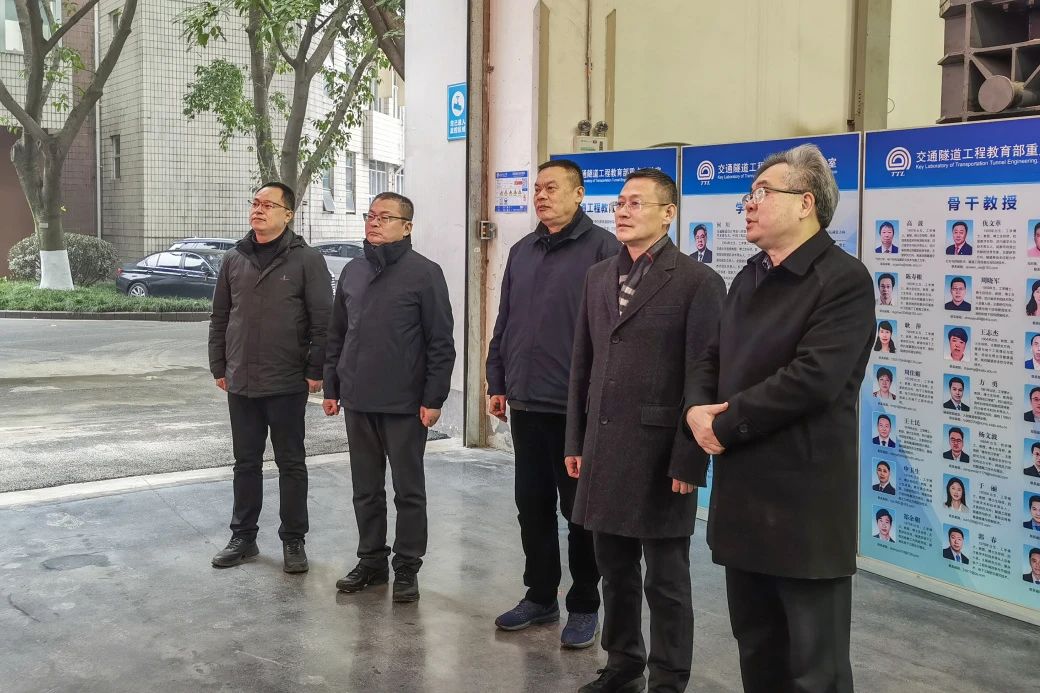 许为民一行参观了极端环境岩土和隧道工程智能建养全国重点实验室,详细了解实验室的发展历程、师资结构、科研成果以及运行与管理机制等情况,并与实验室负责人就相关问题进行交流和探讨。