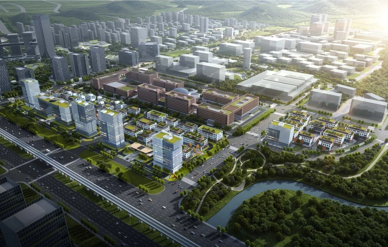 在住房保障方面,一期规划建设约4678套各类型住房,涵盖约510套国际社区、约168套专家公寓、约1904套人才公寓、约2096套人才社区,同时配套建设一所36班九年一贯制学校、一所18班初中、三所幼儿园。二期则规划建设约6500套住房,以及一处18班中学、两处18班小学、三处幼儿园。此外,科创城注重融入区域山水环境,顺应山势打造中央山体公园,构建“1个大型山体公园、2个综合公园、8个社区公园”的公园体系,整体森林覆盖率不低于30%,建成绿化覆盖率不低于65%,致力于塑造“绿色科创城”的景观风貌。