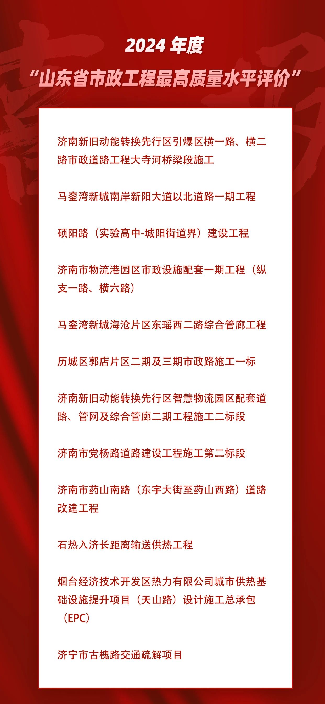 近日,山东省市政行业协会发布了《关于公布2024年度通过市政工程最高质量水平评价工程的通知》,伟德国际1949及其所属子公司参与的12项工程获评2024年度山东省市政工程最高质量水平评价。