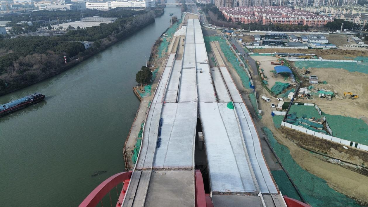 项目于2023年11月进场施工,截至目前已完成桥梁主体结构、桥面铺装及60%道路工程施工,项目总体完成约75%,计划今年6月具备通车条件。下一步,项目部将根据多级工期管控目标,在保证安全和质量的基础上,持续科学优化施工组织安排、强化资源要素保障,科学制定施工计划,确保各工序紧密衔接、工程建设高效推进。