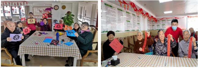 节日期间,金龄健康的员工们以坚守岗位,以长者的需求为重,每一天都安排了丰富多彩的娱乐活动。有泥塑、剪纸、写春联等手工活动;也有击鼓传花、套圈、红歌KTV等参与性活动。公司也对在岗员工表达了关心和祝福,准备了零食福袋和橘子等慰问品,希望他们在照顾好入住长者的同时也能照顾好自己,让欢声笑语包围充满园区,共同度过一个热闹祥和的新年。