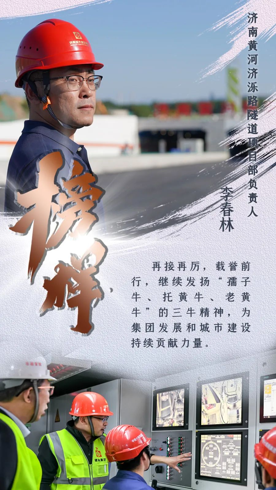 “这份荣誉属于每一位跨黄桥隧建设者”,李春林说:“作为一名党员,在集团党委的坚强领导下,在党支部的引领下,在全体参建人员团结奋战和共同努力下,我们完成了一次又一次建设任务,攻克了一个又一个技术难题,实现了一个又一个节点目标,这是我既难忘、又宝贵的经历,再接再厉,载誉前行,我将继续发扬‘孺子牛、拓荒牛、老黄牛’的三牛精神,为集团发展和城市建设持续贡献力量。”